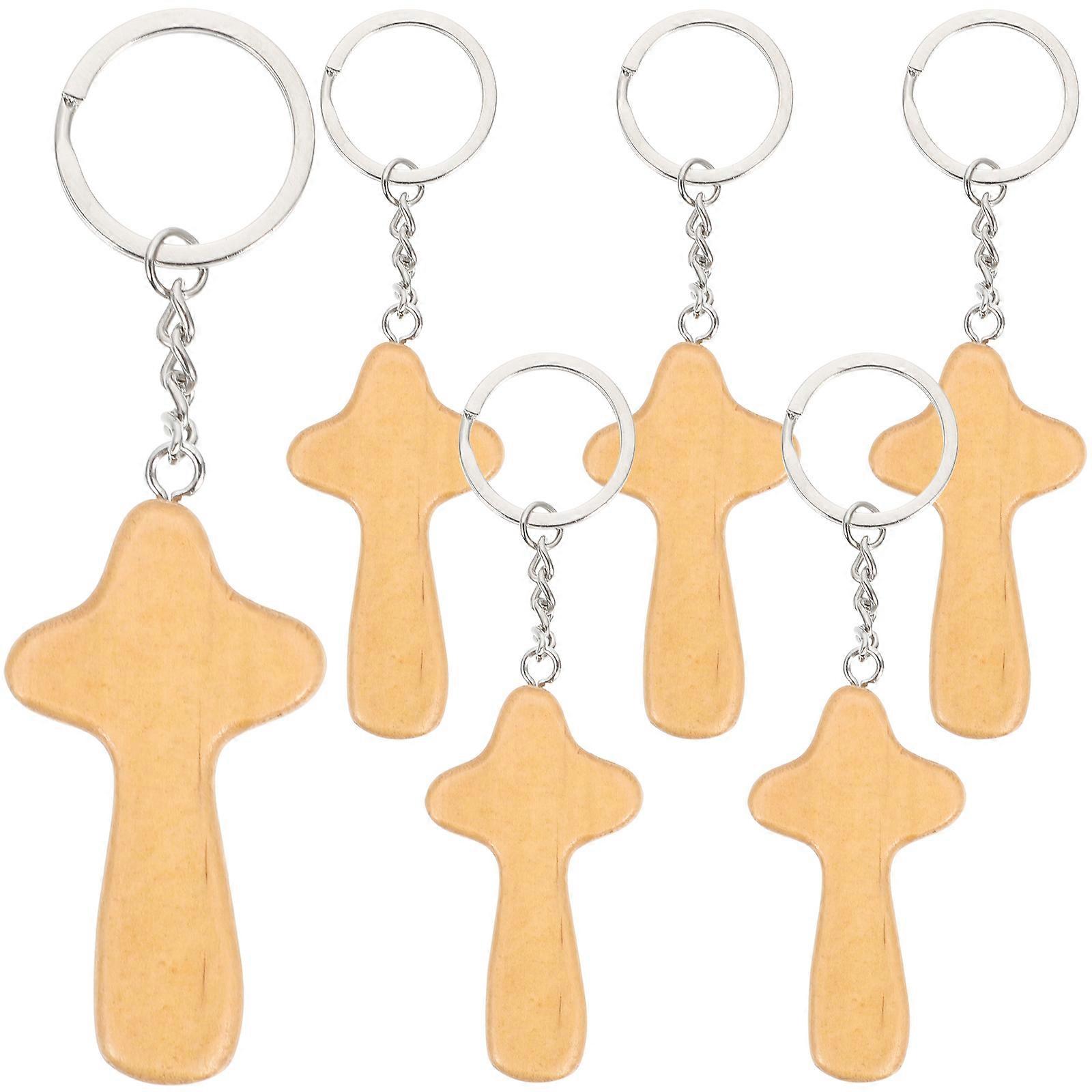 Wood Pendant Keychain Key Organizer Simple and Natural Style Iron Material 12.00X3.30X1.20cm 6Pcs
