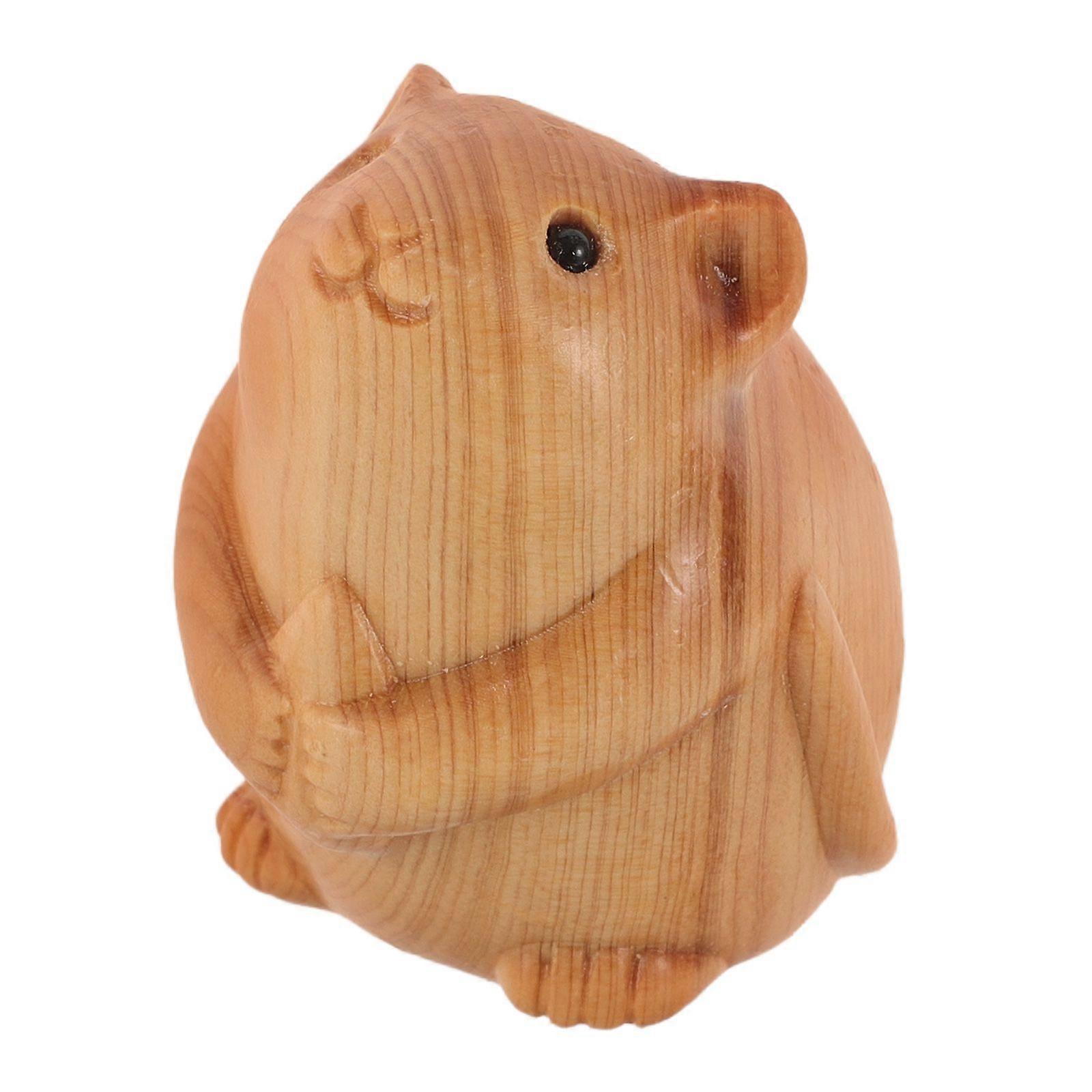 Wood Carving Hamster Statue Lovely Hamster Figurine Wood Carved Animal Statue Wood Carving Hamster Ornament Wood Carved Crafts Home Decor