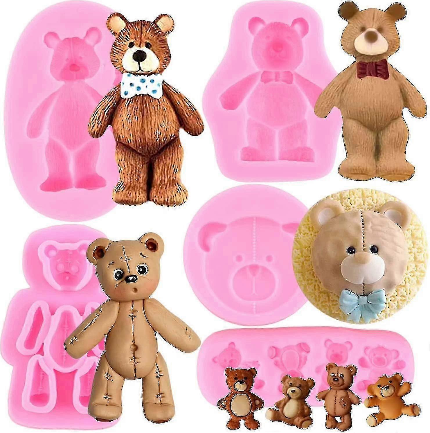 Bear Silicone Fondant Molds For Cake Decorating Candy Chocolate Gum Paste Crafting Polymer Clay Set Of 5 Wyelv