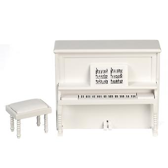 الدمى البيت الأبيض المستقيم البيانو ومقعد مصغرة غرفة الموسيقى الأثاث