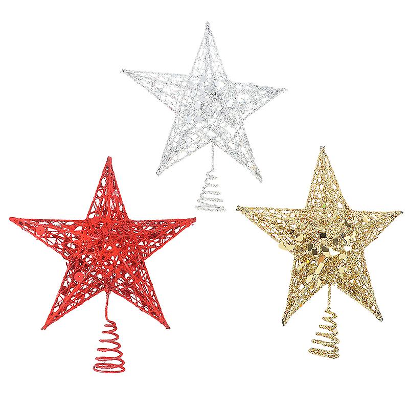 Gold Red Star Shimmery Star Christmas Tree Top Decor 5 Point Star Tree Top Decor