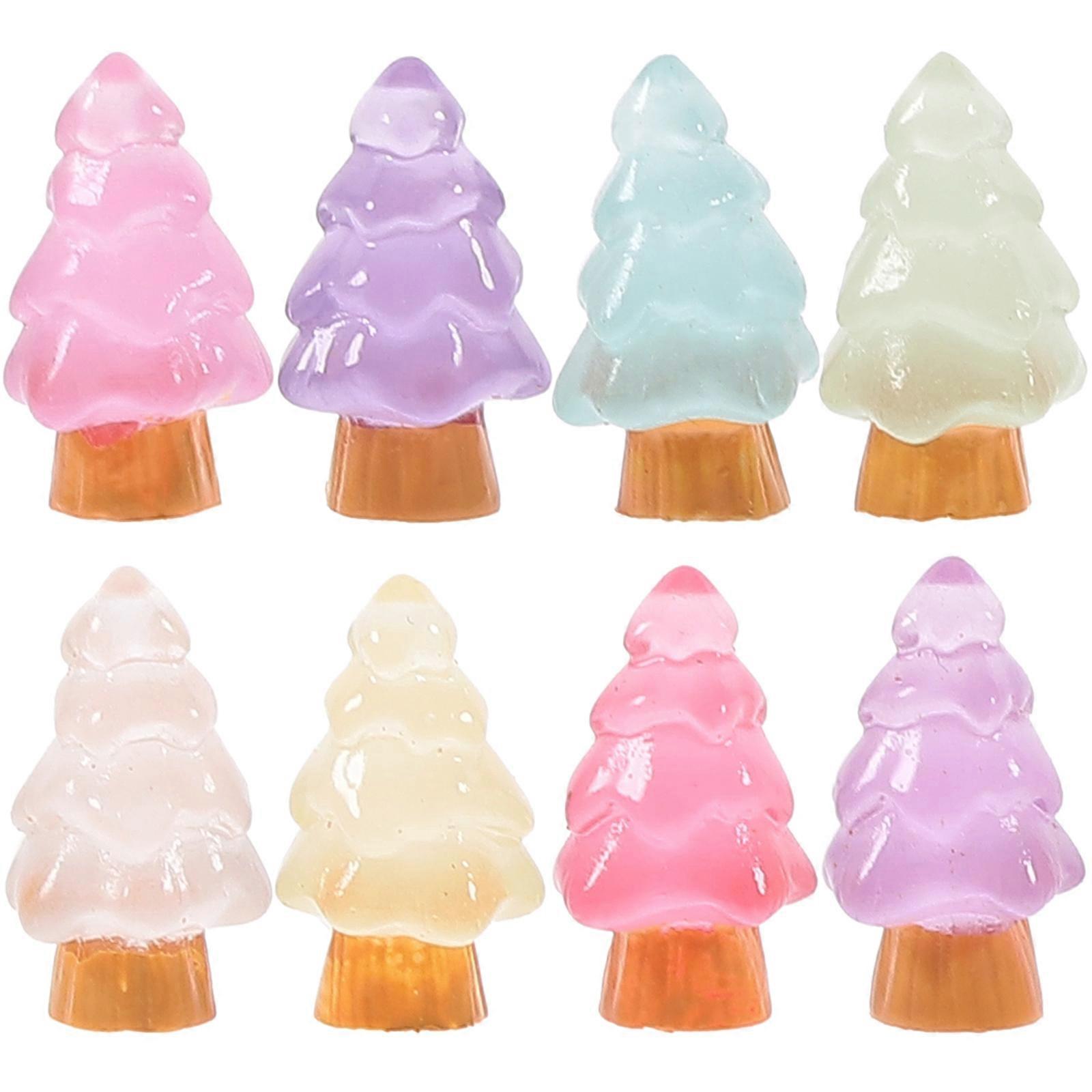 Resin Glowing Tree Decoration Christmas Tree Figurine Festive Atmosphere Mini Christmas Tree Desktop Decor 8Pcs