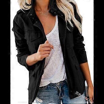 الربيع والخريف سليم تناسب اتجاه الموضة بلون فضفاض النسخة الكورية سستة متعددة جيب سترة معطف المرأة W156