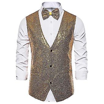 Men's Sequin Vest Shiny Suit Vest V-neck Waistcoat With Bowtie