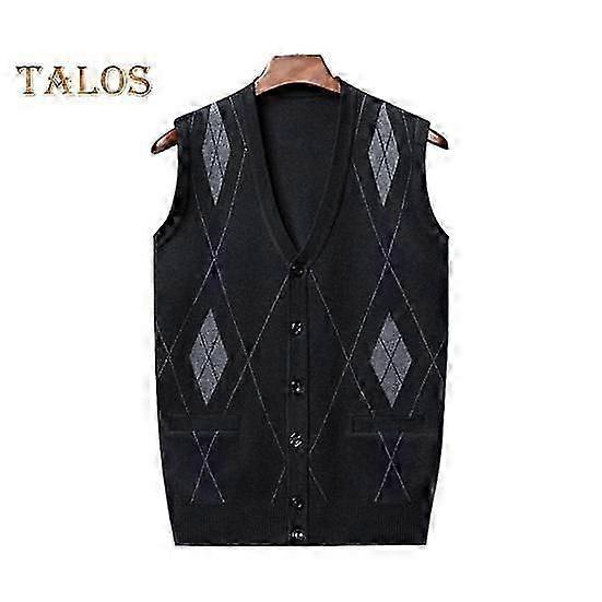 Men Autumn Winter Cardigan Sweater Single-breasted V Neck Sleeveless Buttons Color Matching Stretchy Pockets Knitted Vest Mid-aged Male Top