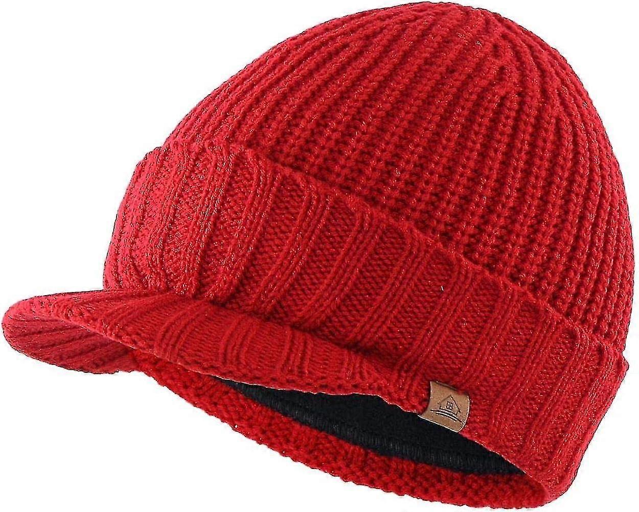 Men's Winter Knit Visor Hat Outdoor Thick Peaked Beanie Hat