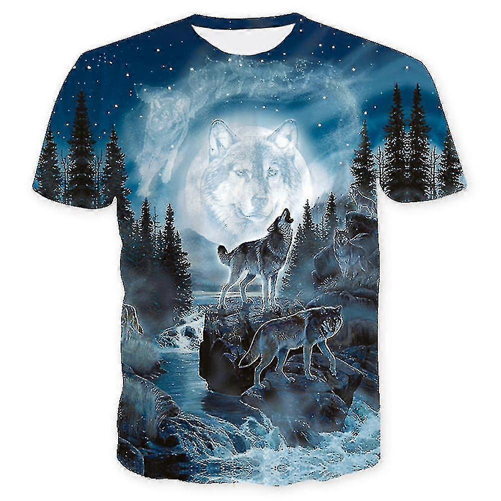 Men's Summer T-shirt Wolf Print Short Sleeve Round Neck Tee Top Casual Soft Cotton