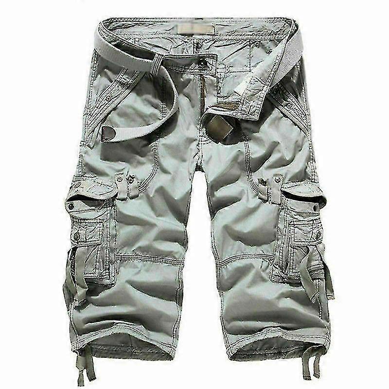 Mens Summer 3/4 Long Length Shorts Elasticated Waist Cotton Cargo Combat Pants