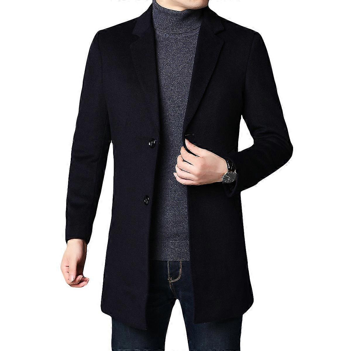 Men's Solid Colour Thick Autumn And Winter Wool Coat Autumn And Winter Woolen Coat Men's Medium-length Section Suit Collar Warm Slim Trench Coat Busin