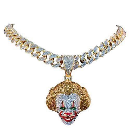 Men Women Hip Hop Movie Clown Pendant Necklace with 13mm Miami Cuban Chain Iced Out Bling HipHop Necklaces Male Charm Jewelry