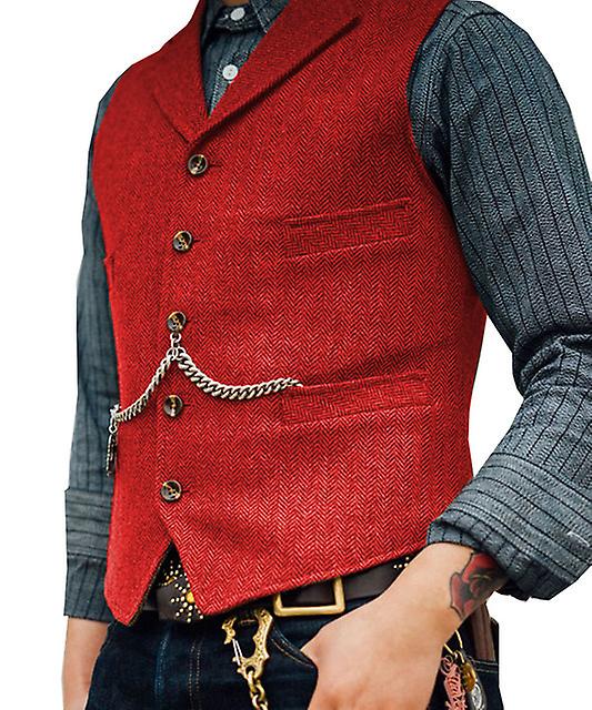 Men's Suit Vest Brown Wedding Wool Tweed Business Waistcoat Jacket Casual Slim Fit Gilet Homme Vests For Groosmen Man Wedding