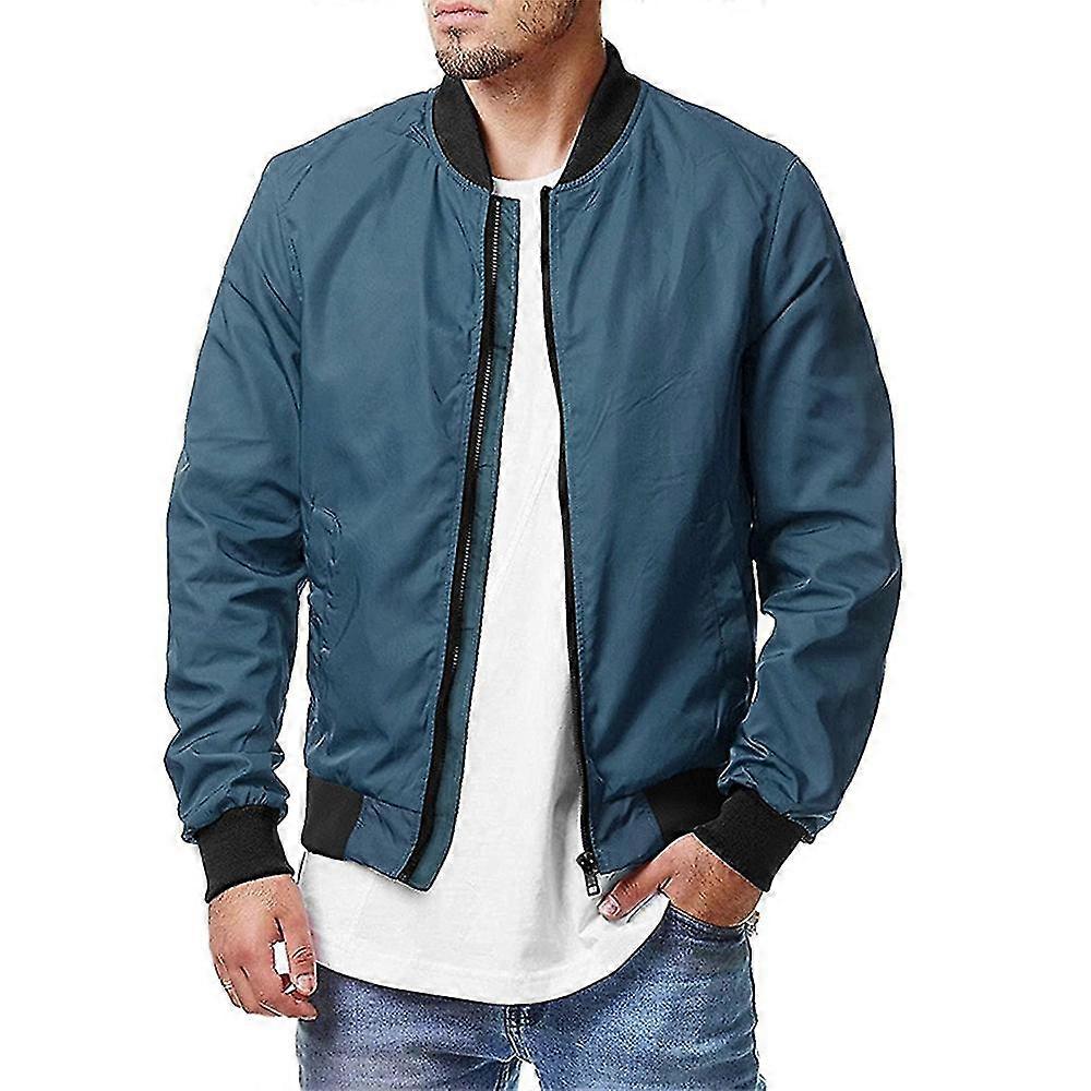 Men Bomber Jacket Long Sleeve Full Zip Casual Coat Stand Collar Outwear With Pockets
