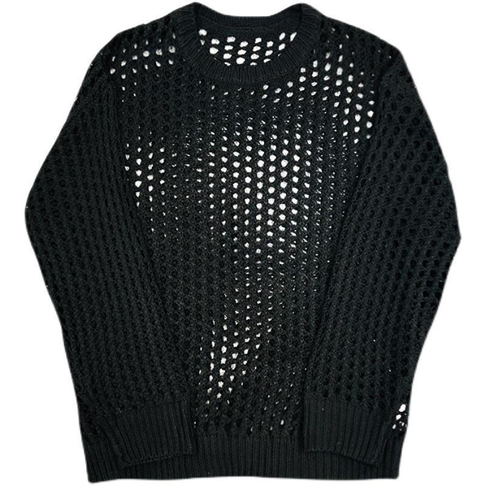 Men Hollow Top Mesh Fishnet Solid Color Round Neck Loose Long Sleeve Clubwear Hip Hop See-through Elastic Pullover Party Top