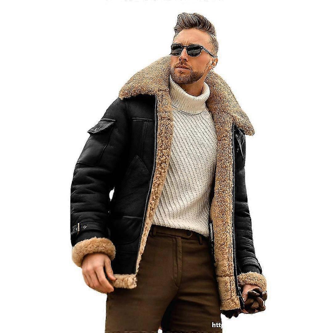Men's Vintage Suede Jacket Lapel Fur Leather Jacket Cashmere Coat