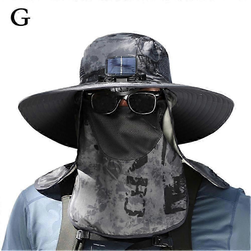 Men Fisherman Hat Cooling Fan Face Hood Hat Full Protection Sunshde Cap