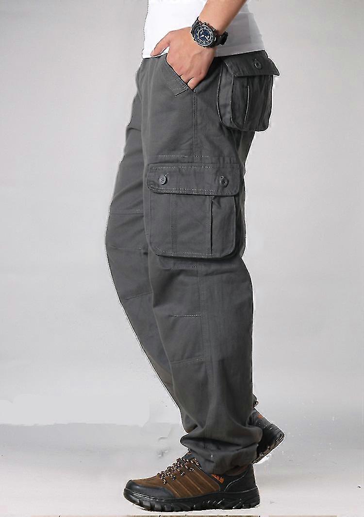 Men's Casual Pants Trousers Multi-pocket Loose Outdoor Solid Color Plus Size Cargo Pants Cotton Straight Youthful Sports Pants
