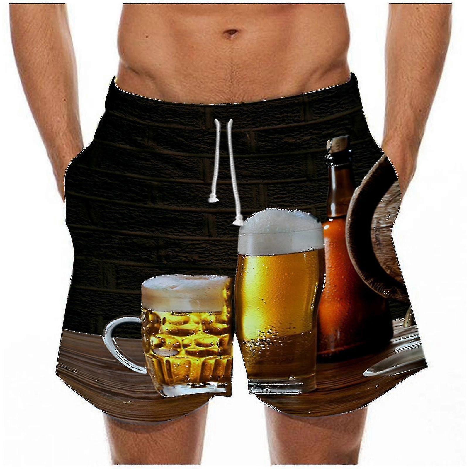 Men's Loose Beer Shorts Printing Quick Dry Swimsuit Sports Swim Trunks Pants Zy.1