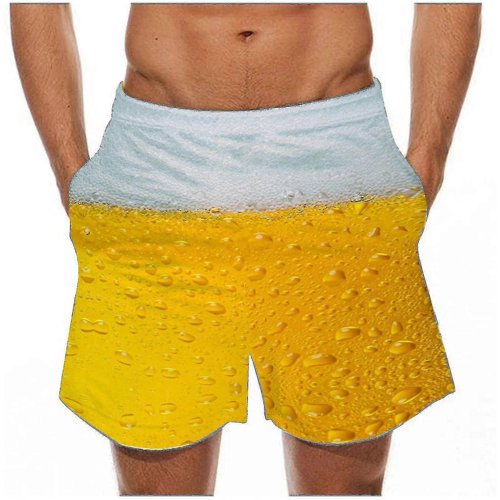 Men's Loose Beer Shorts Printing Quick Dry Swimsuit Sports Swim Trunks Pants Zy.1