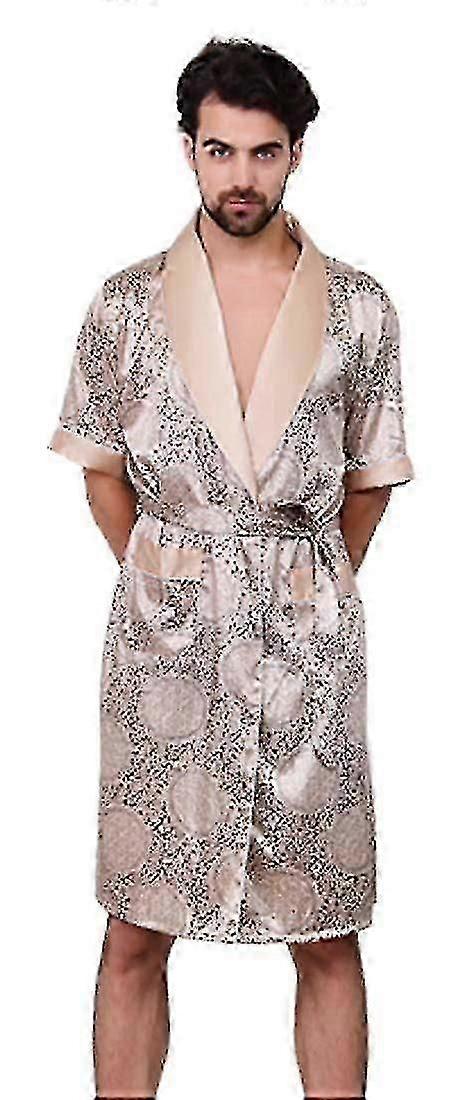 Men Kimono Robes Printed Bathrobe Satin Nightwear Gown Pajamas