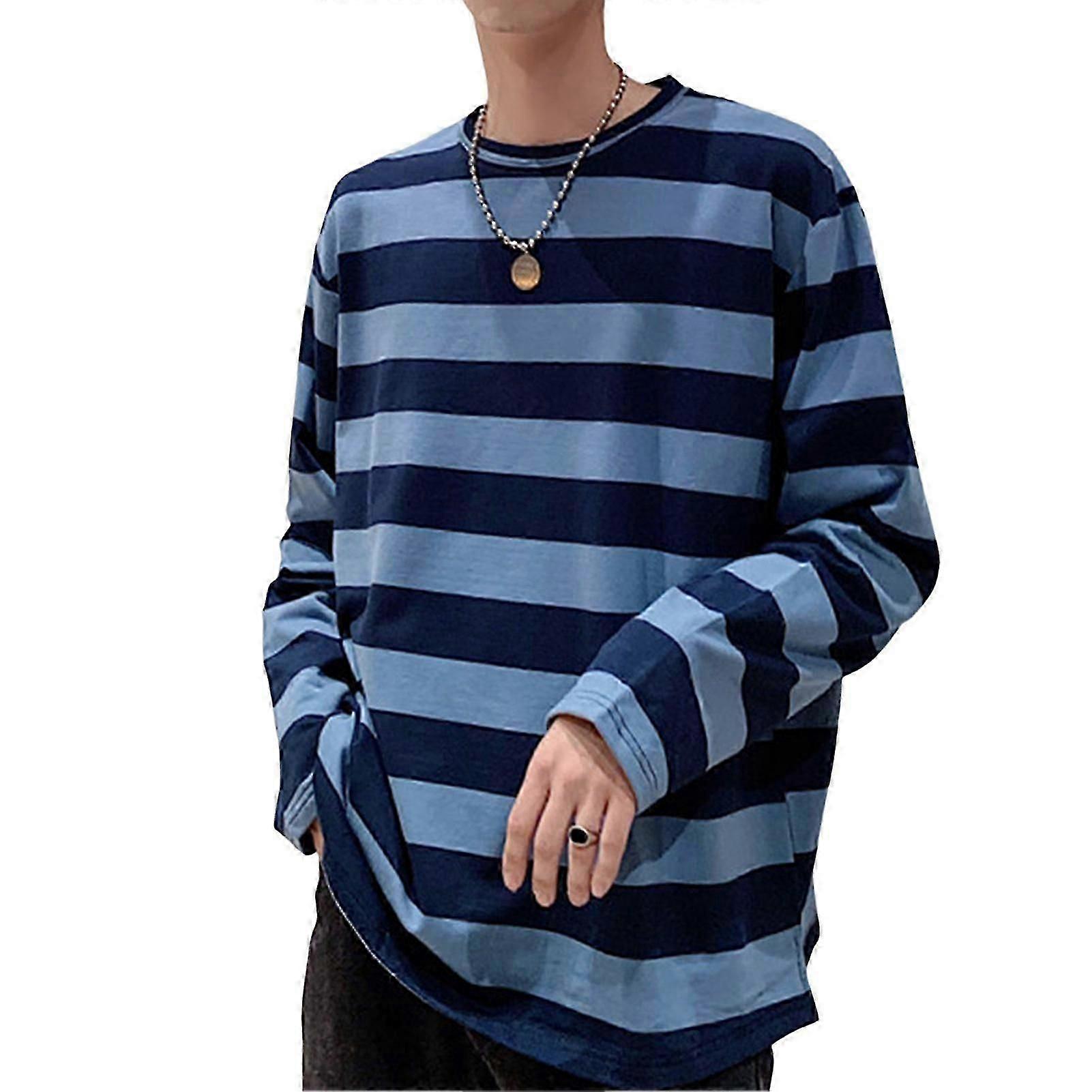Men's Striped Sweatshirt Crew Neck Long Sleeve Casual Loose Fit Fashion Top for Youth Men Accessories