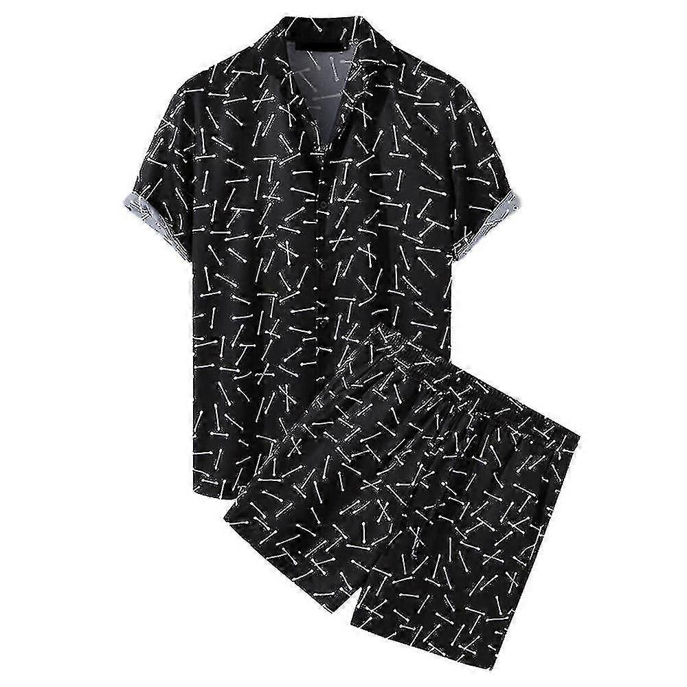 Men Hawaii Boho Summer Outfit Holiday Beach Short Sleeve Shirts Shorts Set