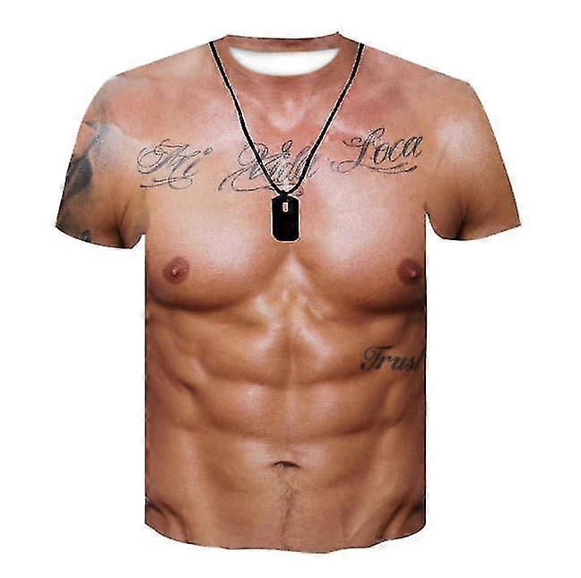 Men's 3d Bodybuilding Simulated Muscle Shirt Nude Skin Chest Muscle Tee Shirt Short-sleeve