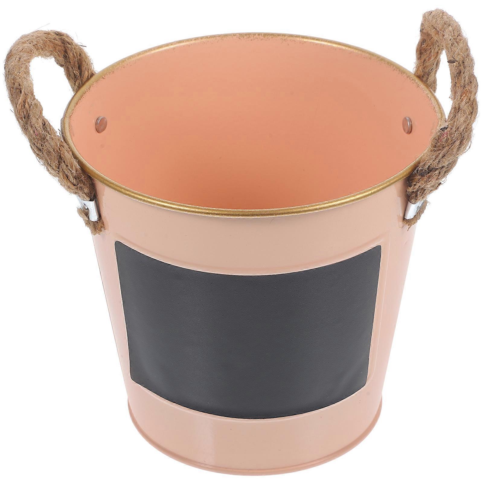 Retro Iron Flowerpot Metal Pail Room Garden Storage Pink 13.50X13.50X12.00CM Plant Holder 1Set