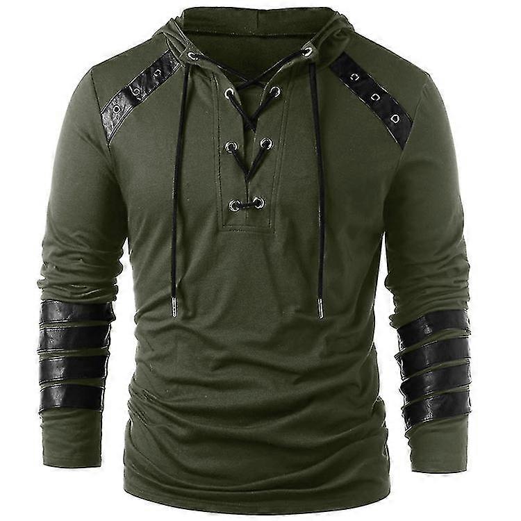 Retro Medieval Pirate Viking Cosplay Shirt Vintage Casual Male Hooded Knight Linen Renaissance Nordic Tunic Bandage T-shirt