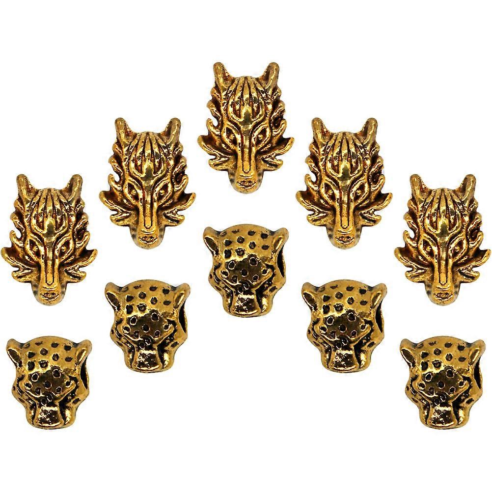 Retro Animal Head Hair Beads Charms for Decoration Smooth Edges Comfortable to Wear Golden 10pcs