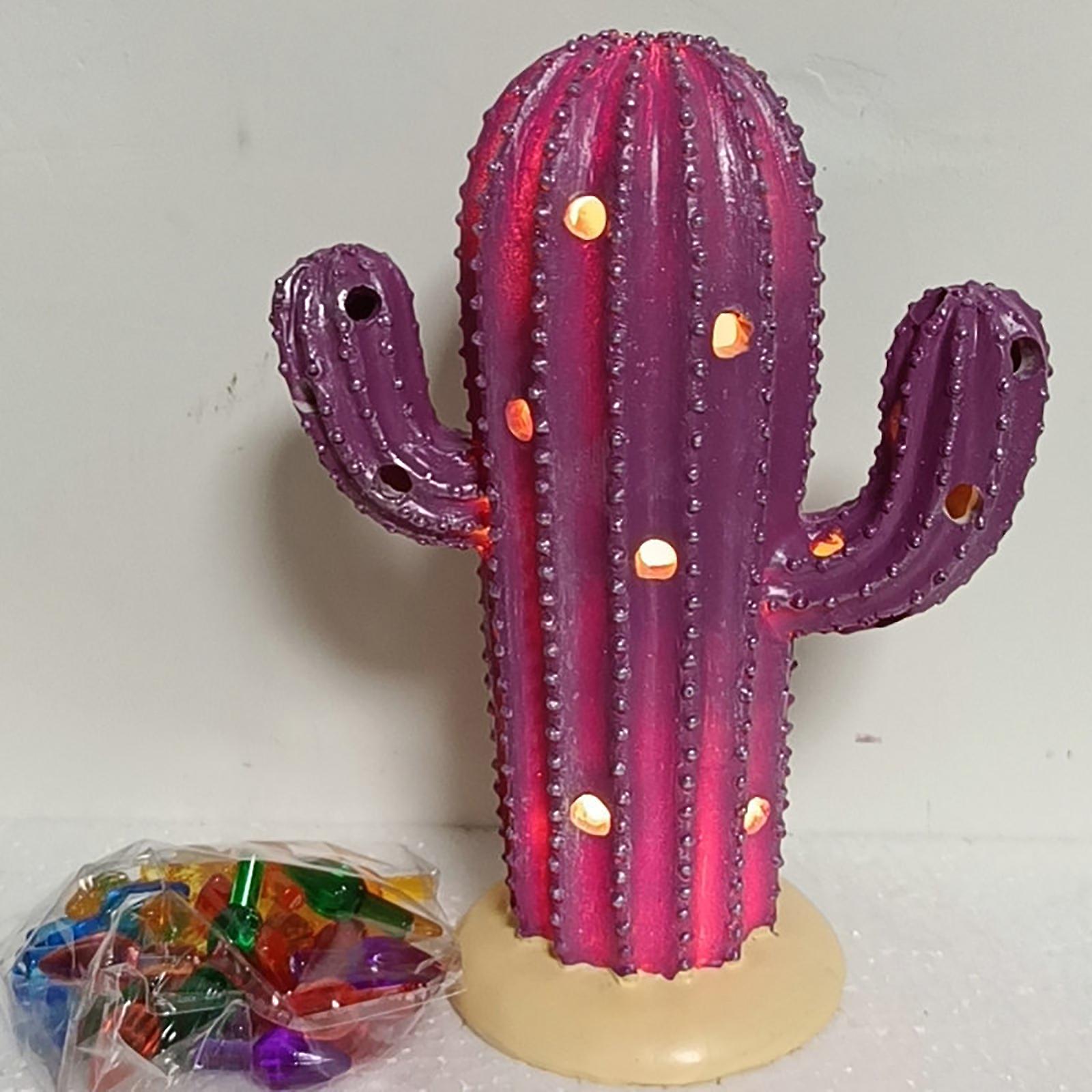 Retro Christmas Cactus Night Light Resin Cactus Tree Modern Led Christmas Home D