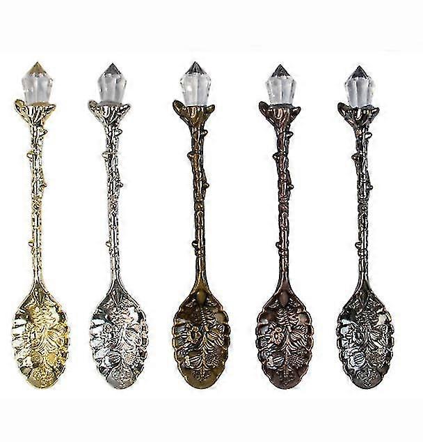 Retro Crystal Antique Alloy Spoon Coffee Tea Spoon Dessert Mini Ice Cream Decorative Spoons Set-5pcs