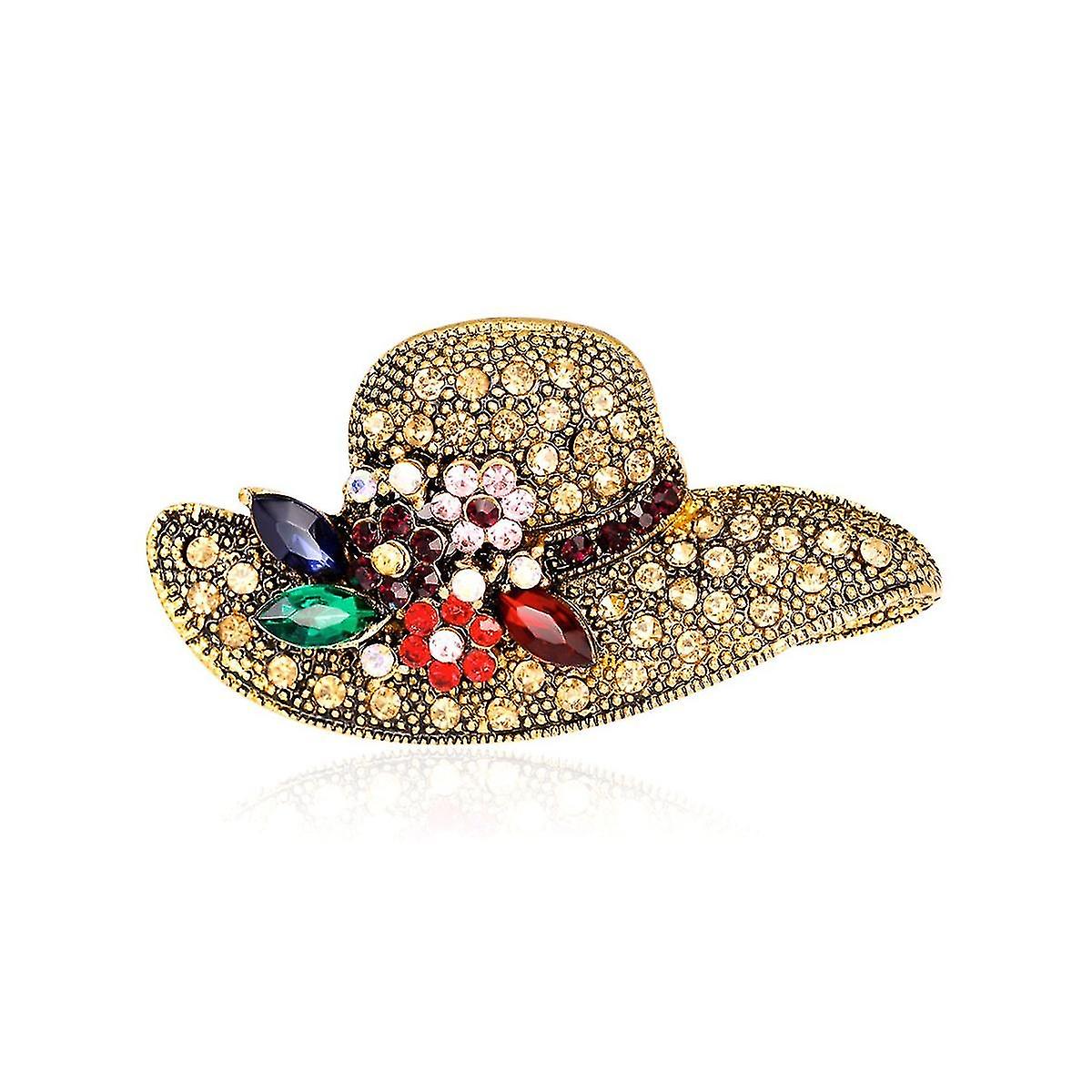 Retro Crystal Flower Hat Brooches For Women Sunhat Topee Design Suits Shirt Brooch Pins Gifts