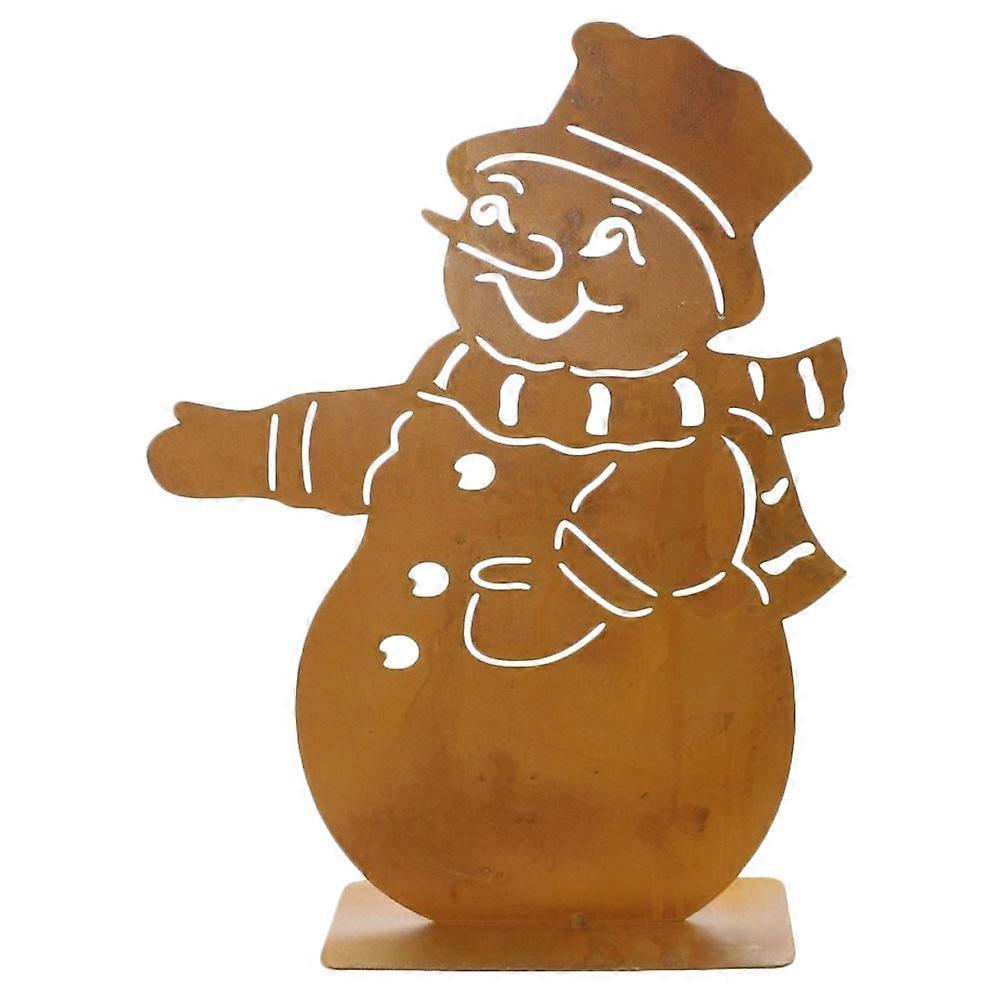 Retro Style Iron Snowman Adornment Christmas Decoration Light Brown 30x22cm For Garden Decor 1Pcs