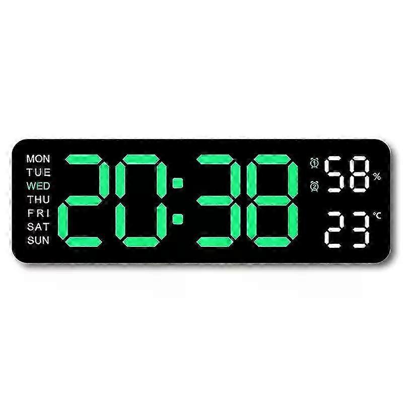 1. LED simple wall clock, can display time/week/temperature/humidity on the same screen, and the date needs to be redirected for display.2. Two tone design, distinguishing different areas for a more intuitive viewing of time.3. Automatic sensitivity adjustment brightness, can also be manually adjusted brightness, 3-level brightness adjustment, USB interface. The unique winding design on the back avoids wire interference, making your home more beautiful and orderly.4. Back hanging hole design: Safe and stable, not easy to fall off. Large Arabic numeral display, easy to read.5. Suitable for study rooms, restaurants, offices, conference rooms, laboratories, schools, hotel reception halls, shops, etc.