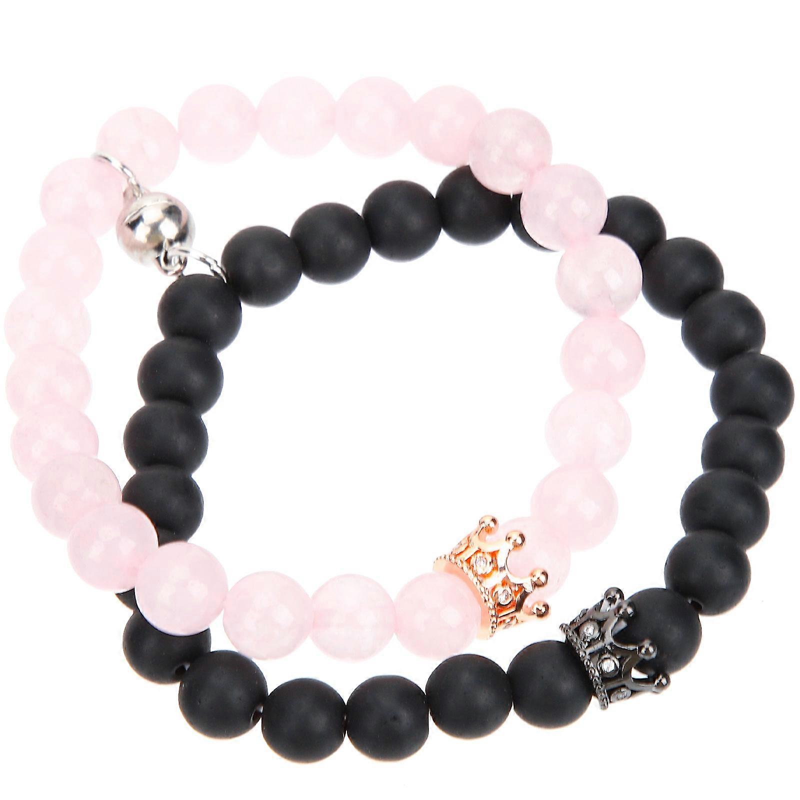 Zircon Crown Beaded Alloy and Glass Relationship Wristbands for Couples, Half Ball Design, Stylish Him and Her Gift