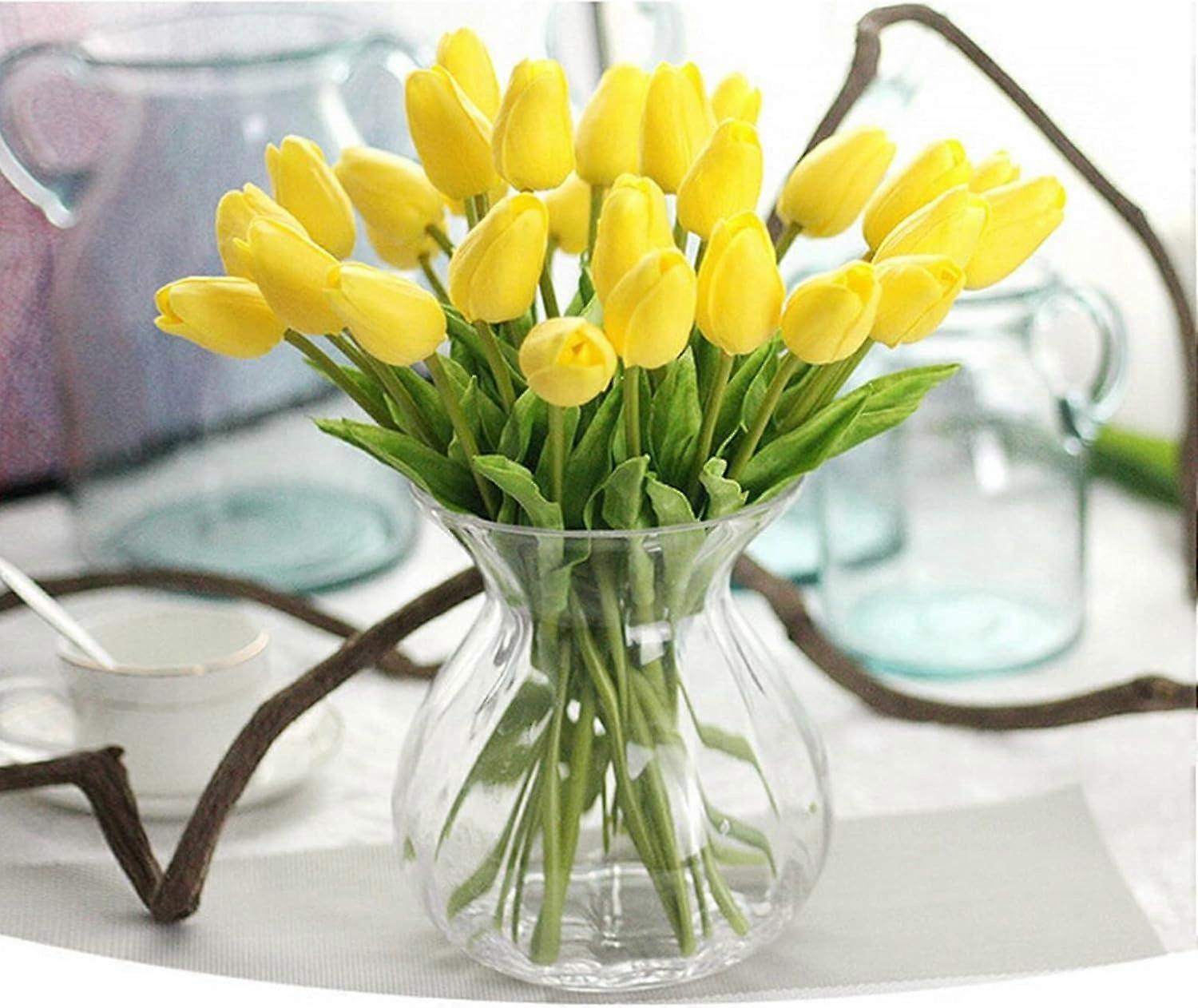Artificial Flowers,Fake Flowers Artificial Tulips Real Touch Bridal Wedding Bouquet for Home Garden