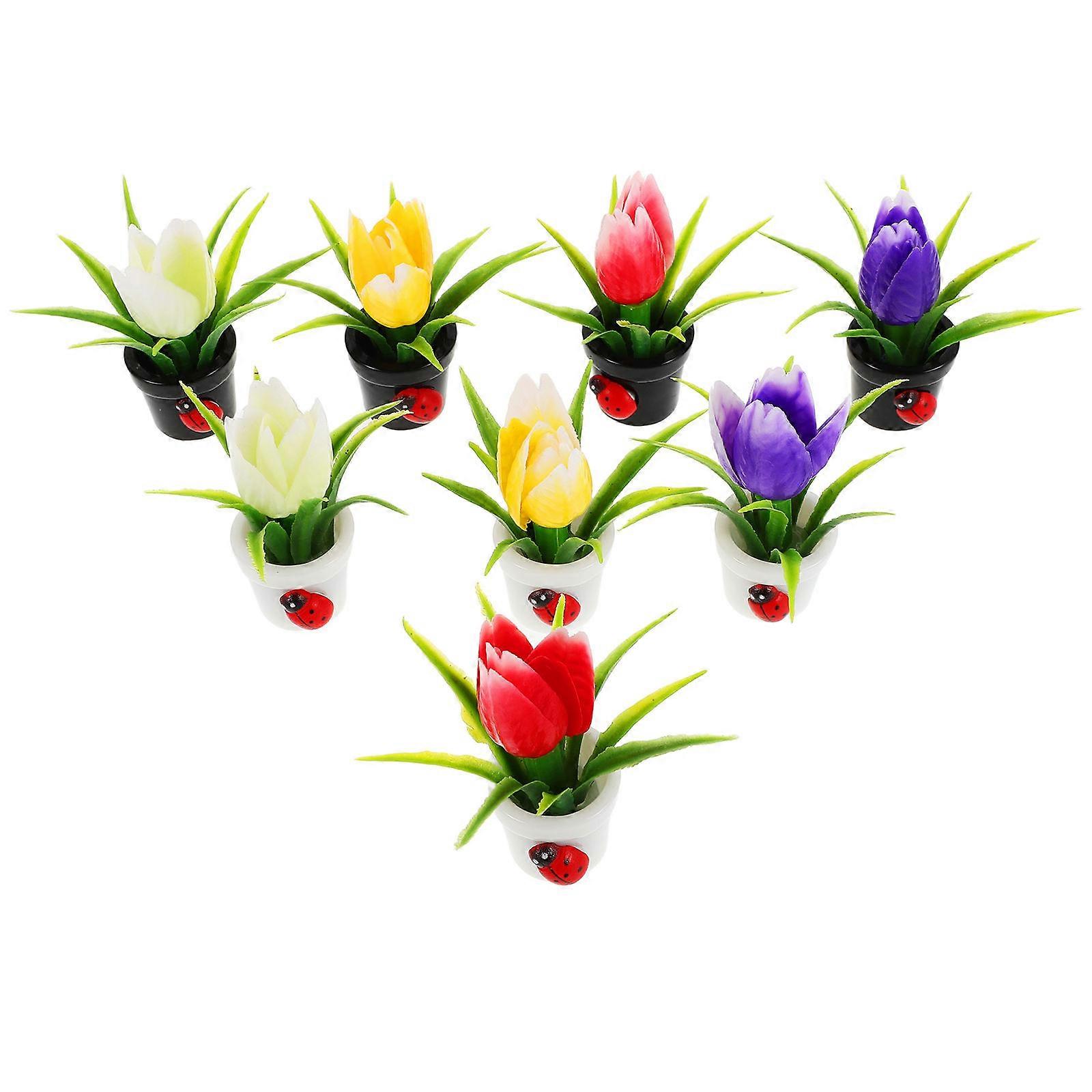 Creative Artificial Potted Flowers for Desk Decoration 8pcs Mini Resin Plants Multi Color