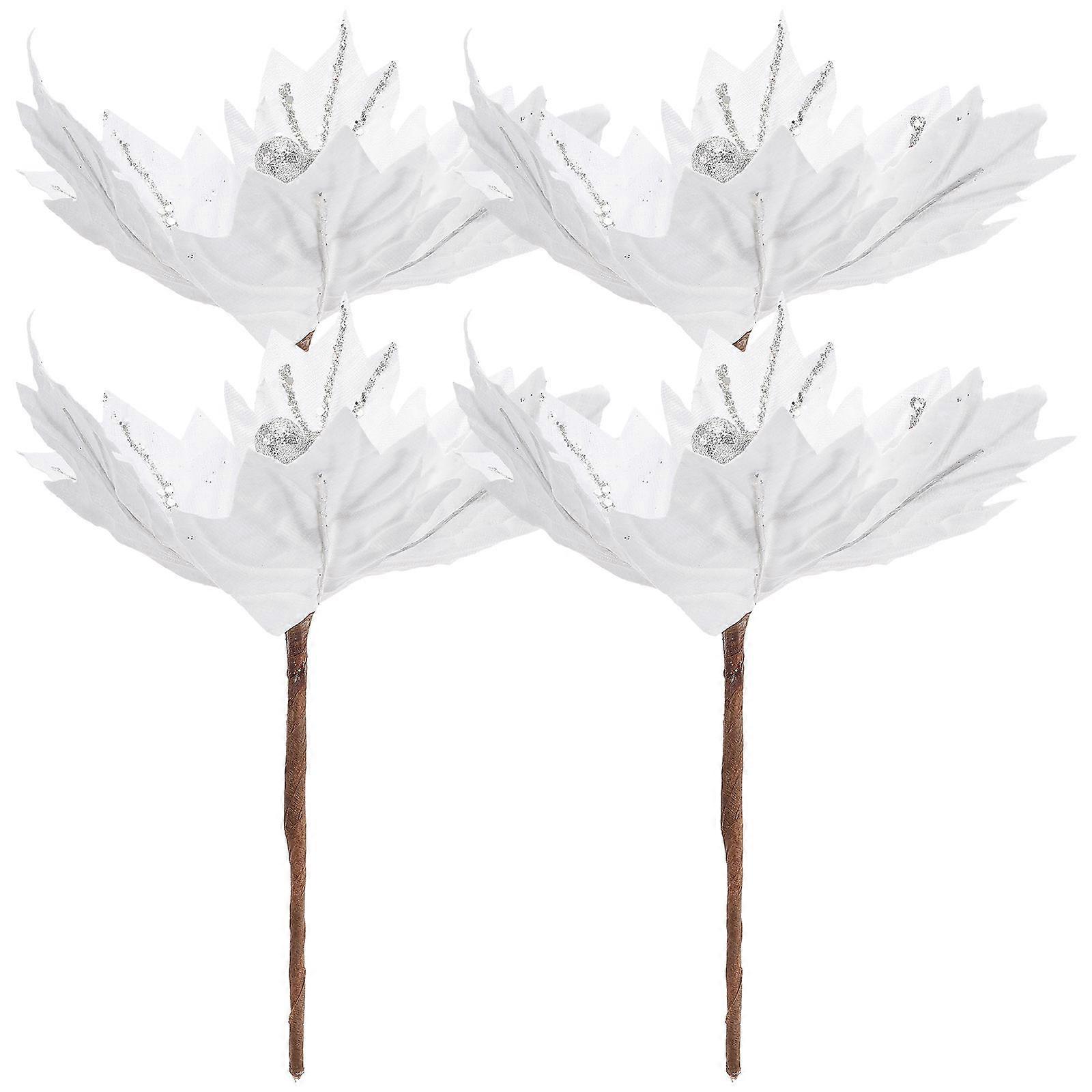 Colorful Artificial Flowers Christmas Flower Sticks Decorative Powder Flower Scene Layout Silver 7x7x24.5cm 4Pcs
