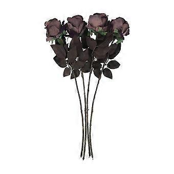 الزهور السوداء هالوين روز محاكاة زهرة ديكور المنزل 52 سم بلاستيك مظهر واقعي 4 قطع
