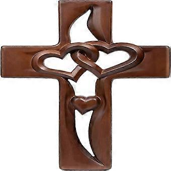 Marriage Cross for Wall Love Wall Decor, 10 Inch Handmade Wooden Intertwined Heart Wall Cross for Wedding Valentine Christmas Gift