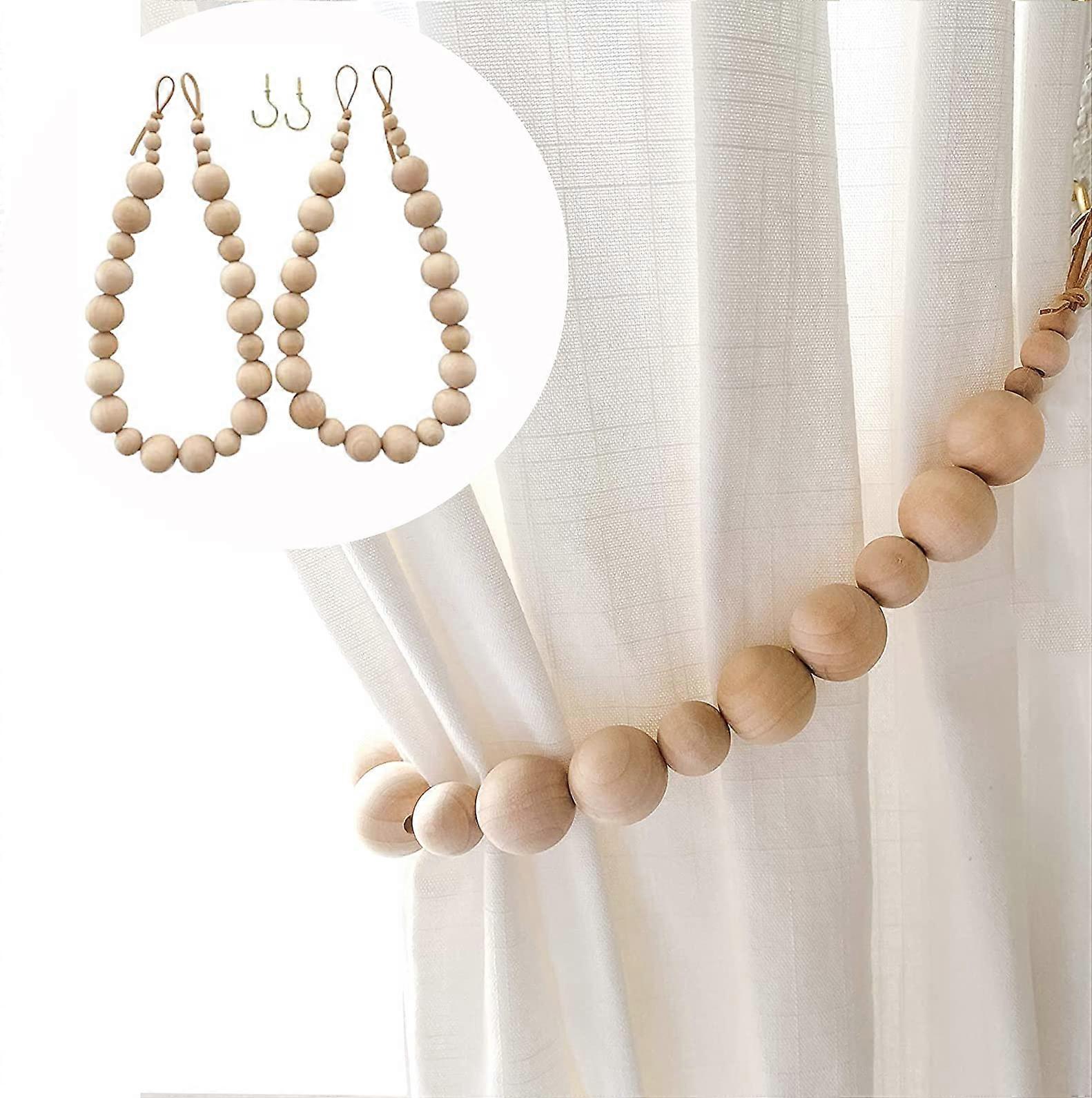 Curtain Tiebacks Curtain holdbacks Rope Boho Curtain tie Backs Farmhouse Curtain Holders for Drapes Natural Wood Bead Curtain Ties 2 Packs