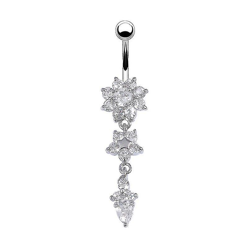 Navel Belly Button Rings Crystal Flower Dangle Bar Barbell Body Piercing Jewelry Gifts