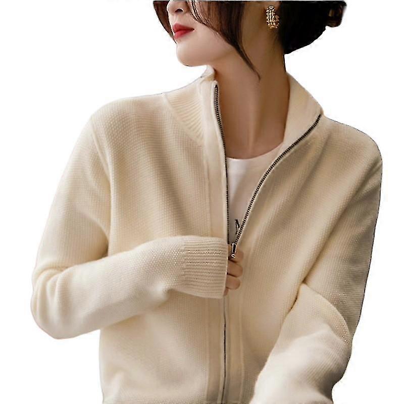 Ladies Stand Collar Zipper Knit Cardigan Sweater Jacket