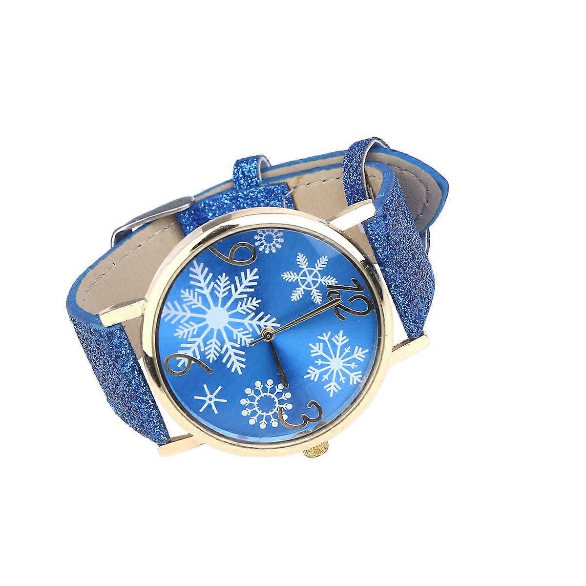 Ladies Wrist Watch Stylish Snowflake Face Christmas Watch Indoor Activities Timekeeping Quartz Movement Blue 1Set