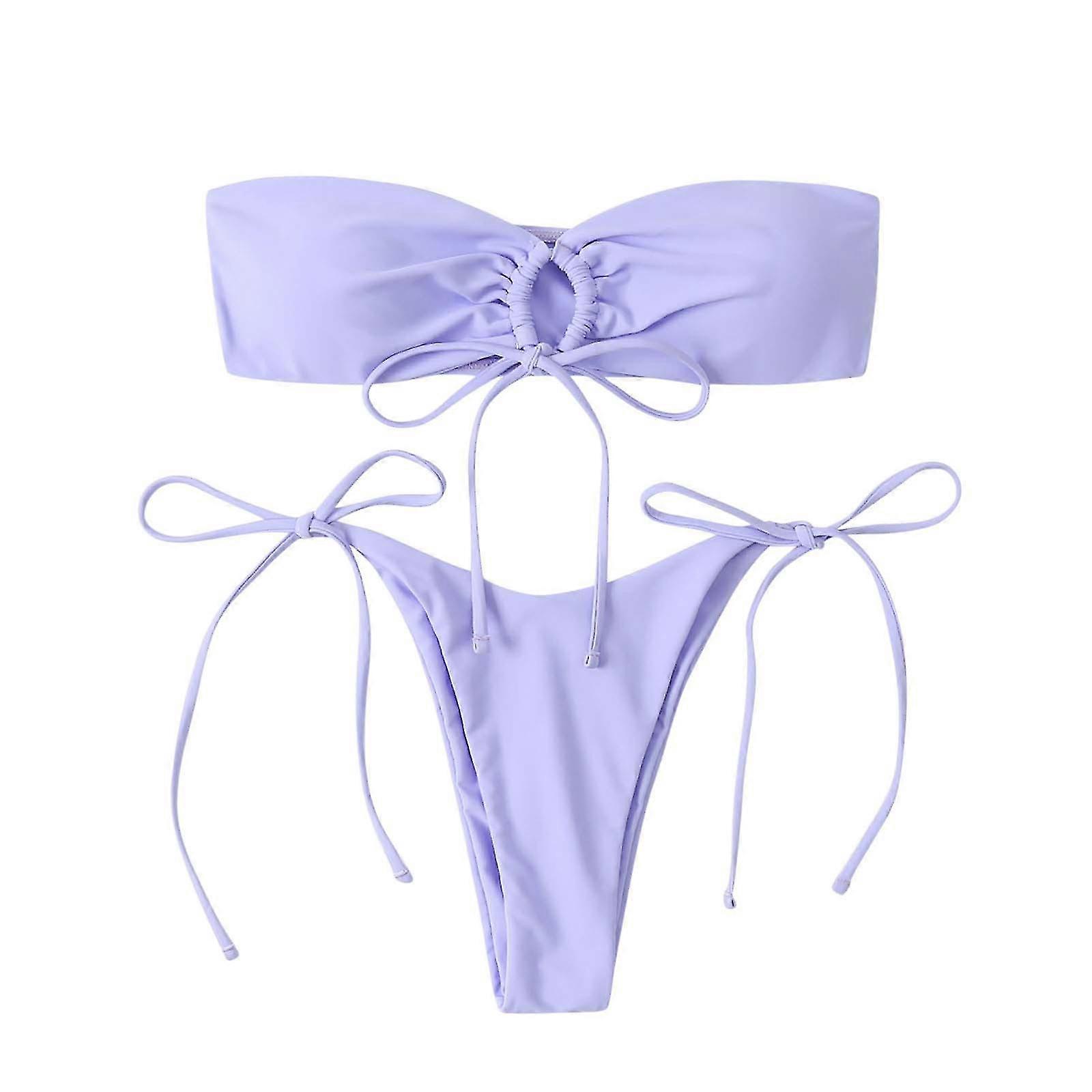 Ladies Sexy Tube Top Split Bikini With Chest Pad Without Underwire