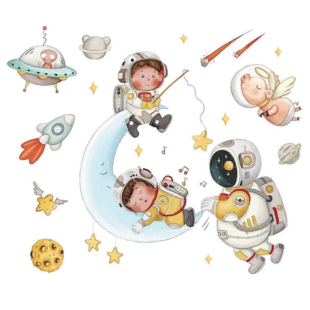Indoor Wall Decals Astronaut Moon Design For Home Decor Assorted Color 90.00X30.00X0.10CM No Glue Required Removable Without Damage 1Set