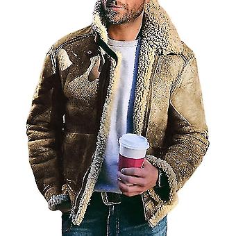 الشتاء الرجال جلد الغنم الفراء الجلود سترة سماكة باركا الصوف طية صدر طوق معطف