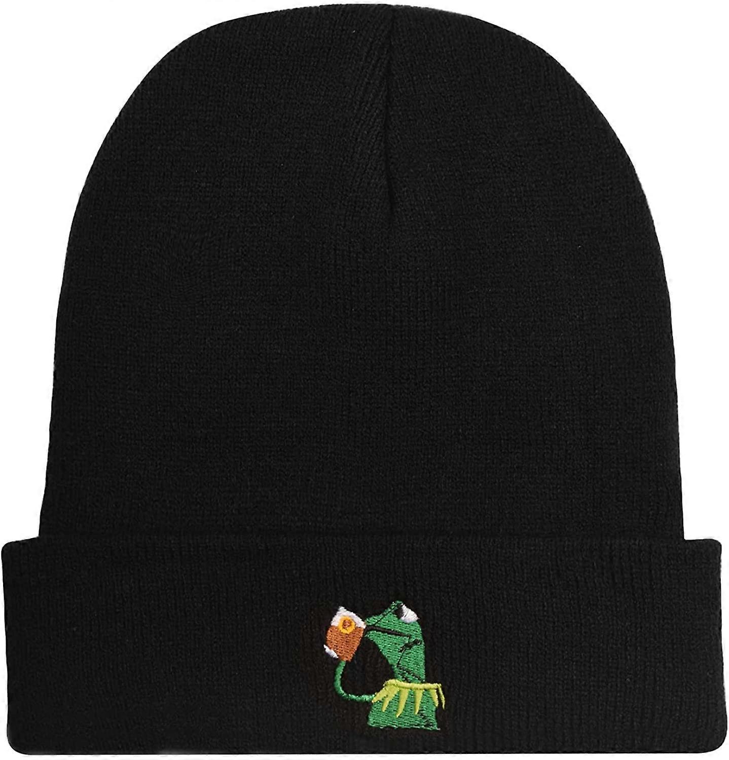 Winter Kermit The Frog Sipping Tea Beanie Warm Comfortable Soft Oversized Thick Cable Knitted Hat Unisex Knit Caps
