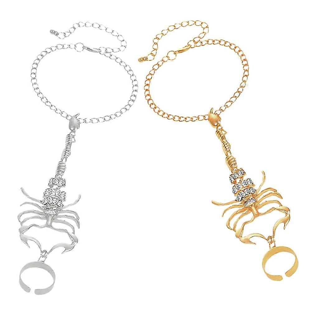 Punk Scorpion Finger Ring Hand Chain Exaggerated Design Comfortable Jewelry for Women Party Wedding Nightclub Silver Gold
