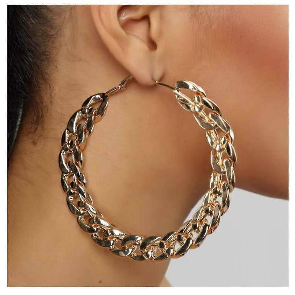 Punk Chunky Cuban Chain Hoop Earrings Geometric Large Round Loop Earrings Wedding Prom Party Festival Jewelry for Women and Girls (Gold)
